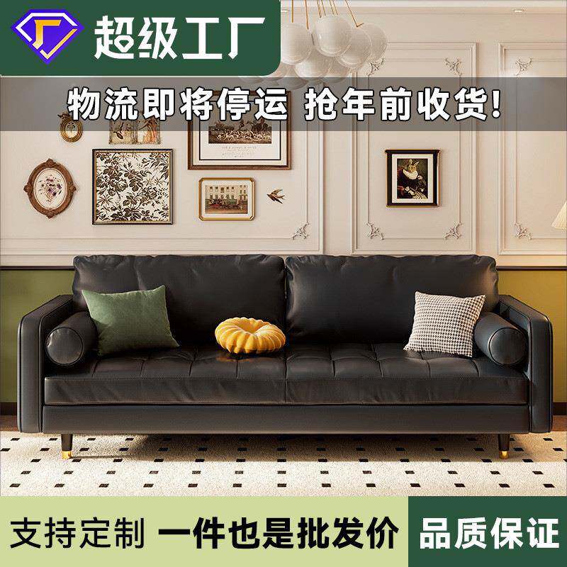 美式复色古轻皮艺29391沙发北欧奢法式客黑双人三人位小户型直厅