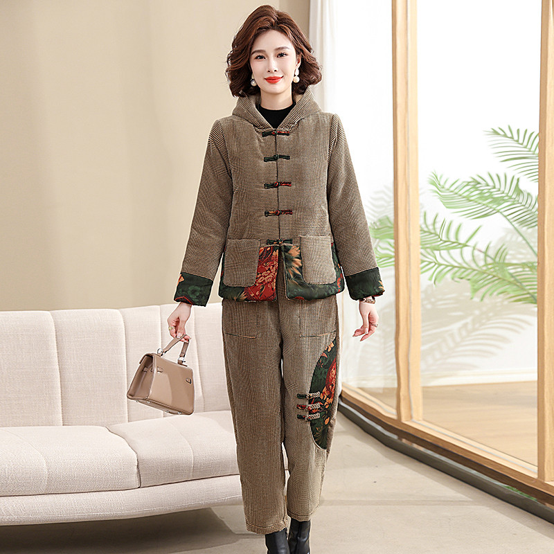 妈妈装冬时尚加绒中国风套装棉衣