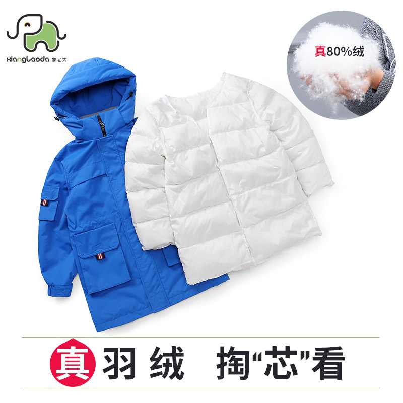 象老大男童羽绒服冬季中长加厚活面可拆卸儿童工装中大童洋气外套