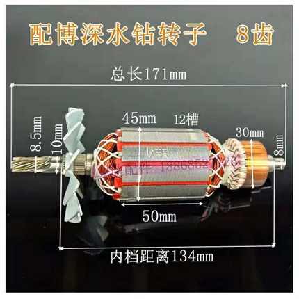 配博深90钻孔机转子8齿水钻配件 110水钻电机115钻机电机空调钻机