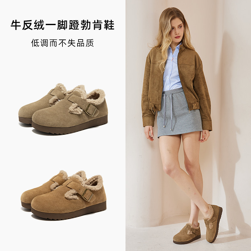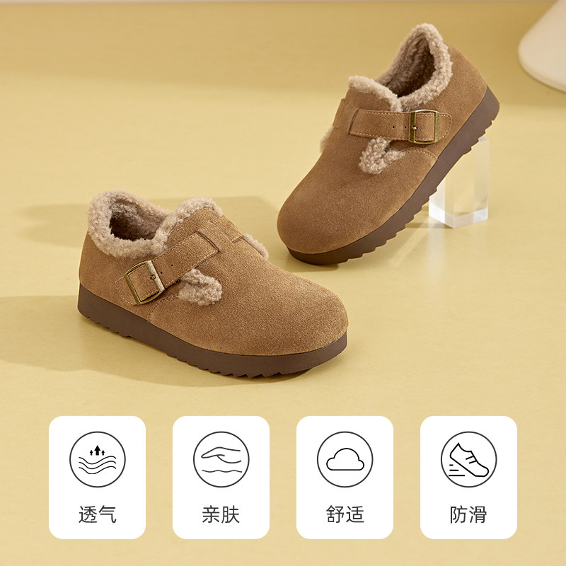 【商场同款】真皮勃肯鞋女秋冬新款百搭厚底加绒保暖棉鞋雪地靴