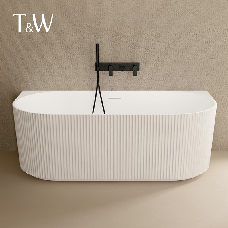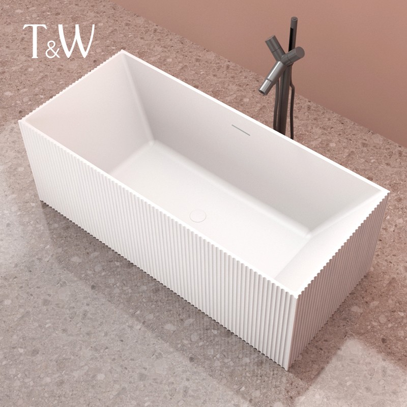 特拉维尔独立式人造石浴缸家用小户型竖条波浪纹浪漫网红酒店浴盆
