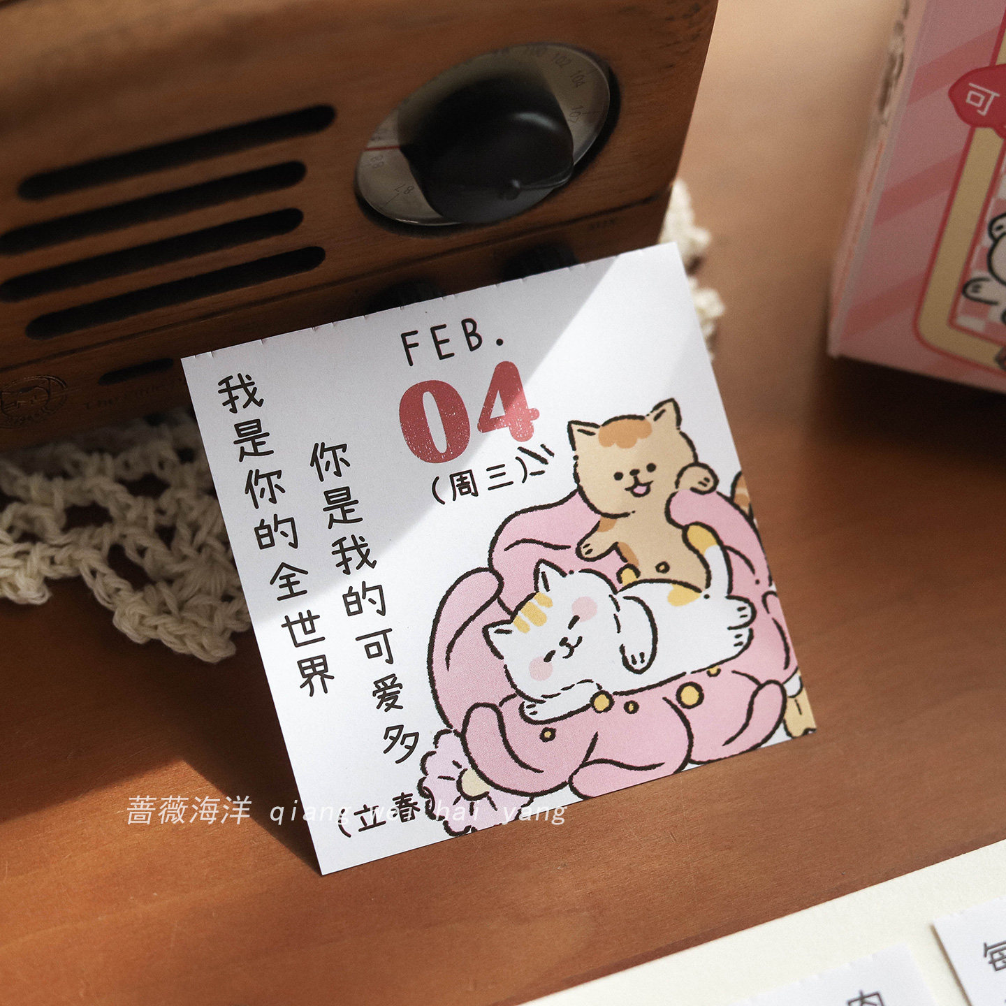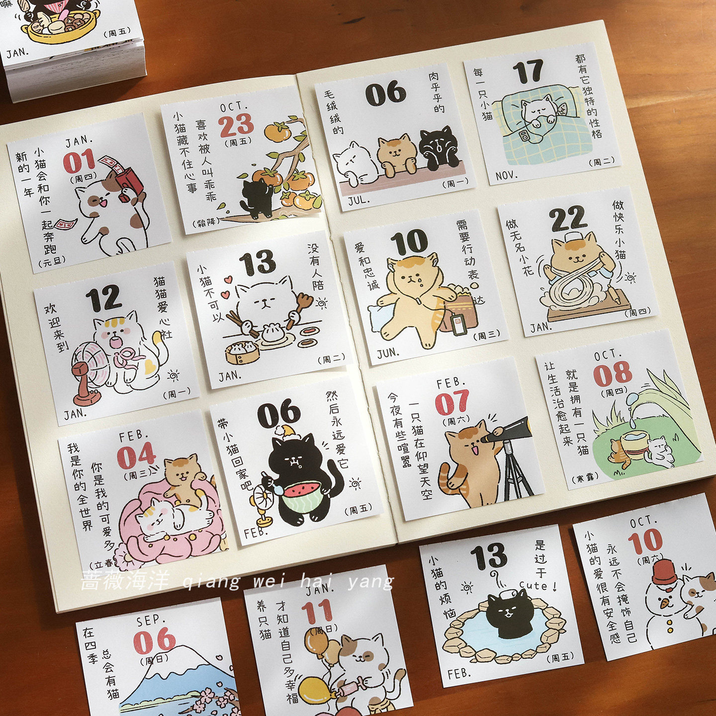 蔷薇海洋 猫咪翻页365日历2026治愈文案台历桌面摆件手帐便签素材