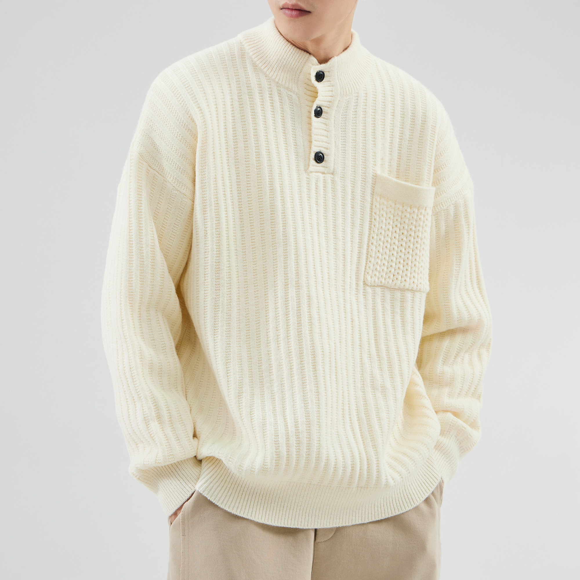 亨利领毛衣男春秋季潮牌宽松套头慵懒风针织衫外套黑色加厚打底衫