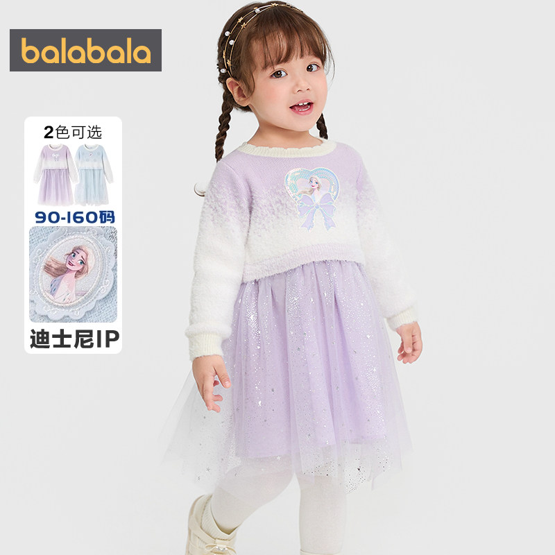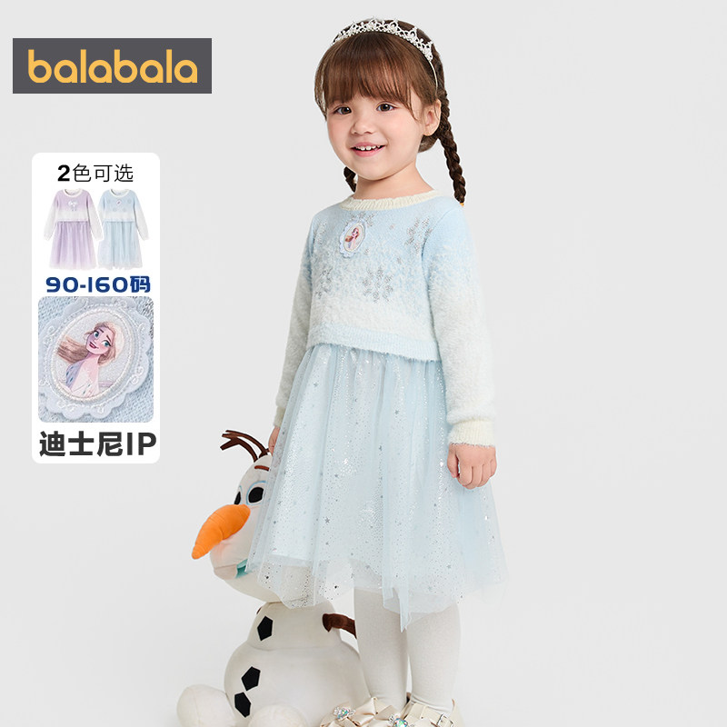 迪士尼IP巴拉巴拉女童连衣裙大童洋气公主秋冬款童装儿童宝宝裙子