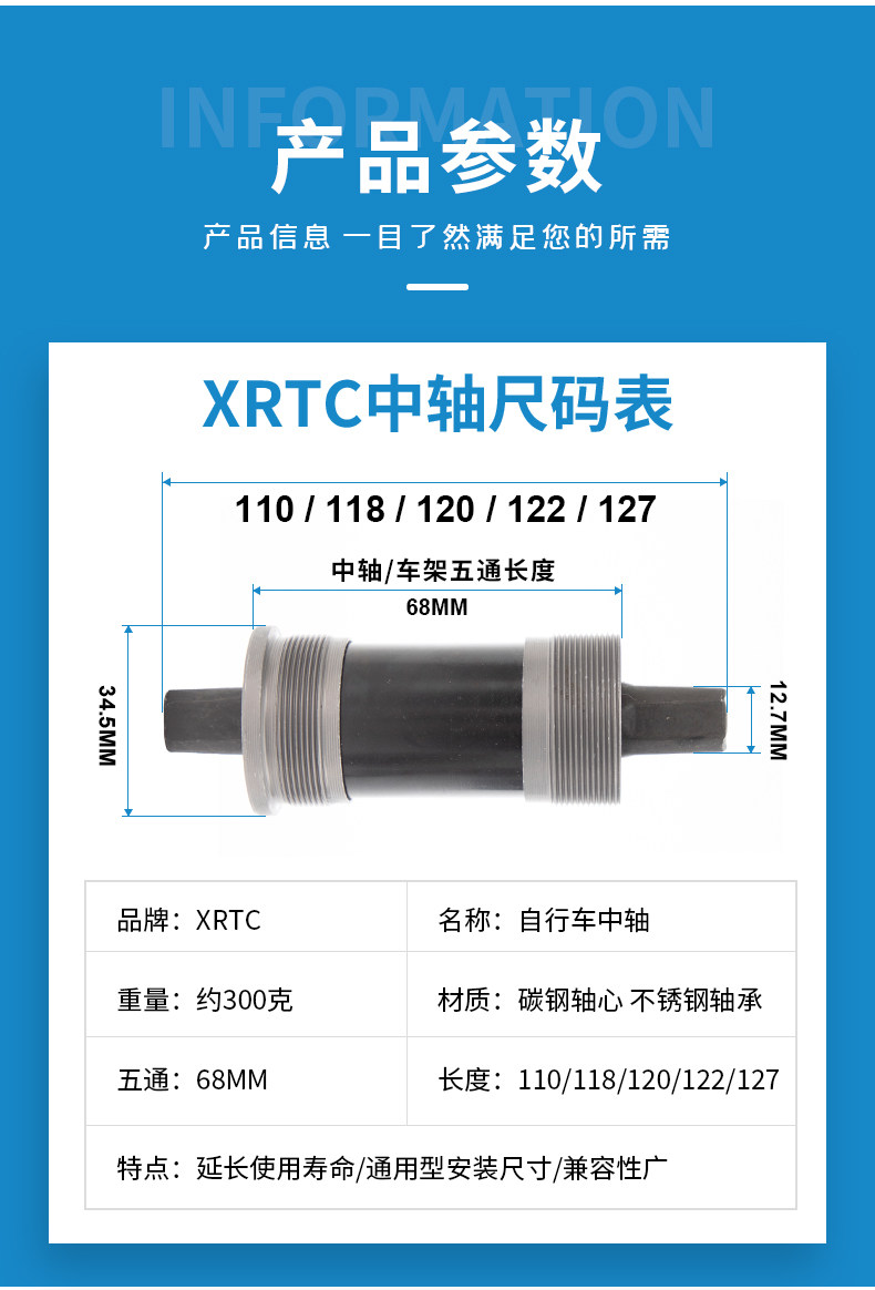 XRTC山地车中轴公路城市普通自行车单车中轴培林轴承防水密封盒装