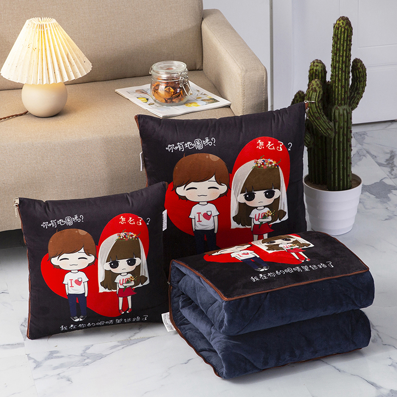 加厚抱枕被子两用珊瑚绒汽车靠垫被办公室多功能可折叠午休空调被