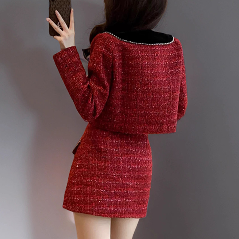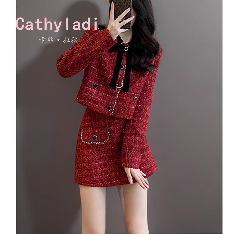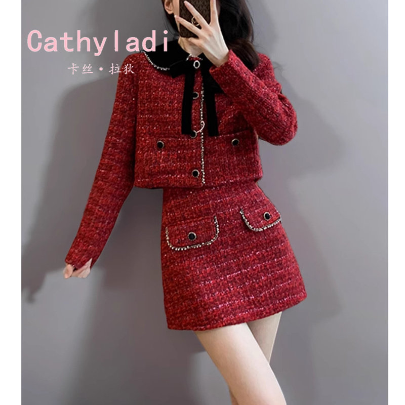 CATHYLADI高级感上衣高腰短裙两件套2025年秋季新款小香风套装女