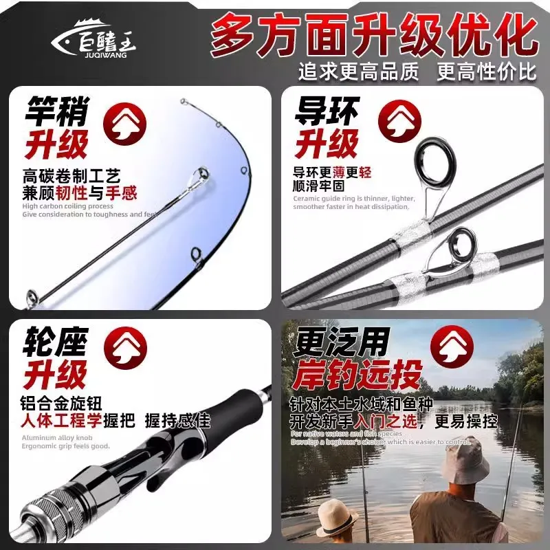 碳素新款路亚鱼竿套装新手钓鱼竿纺车轮水滴轮抛竿远投马口竿