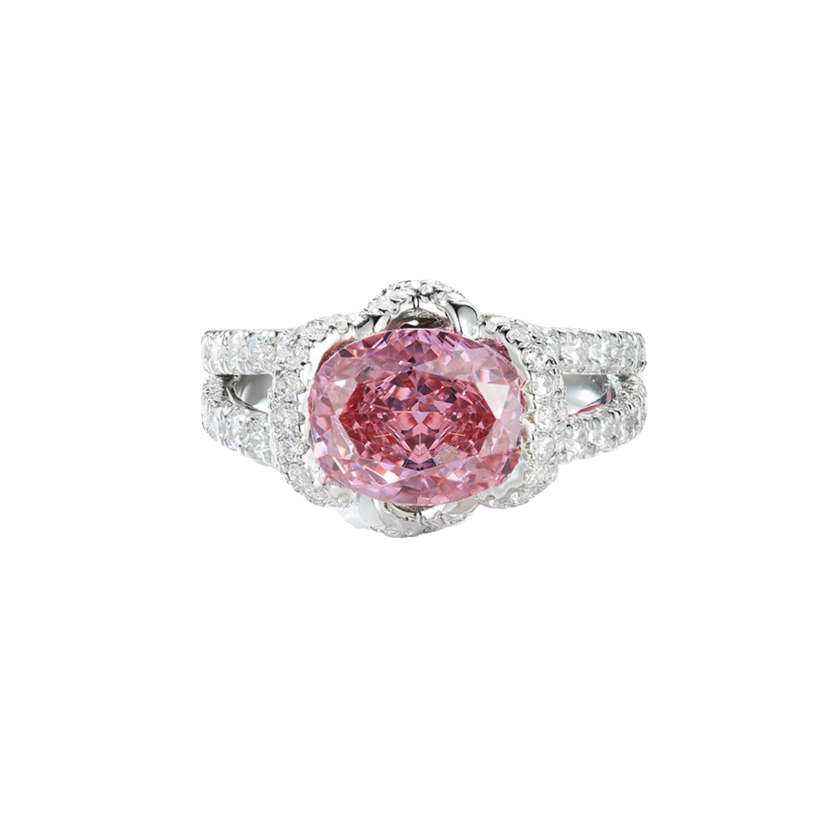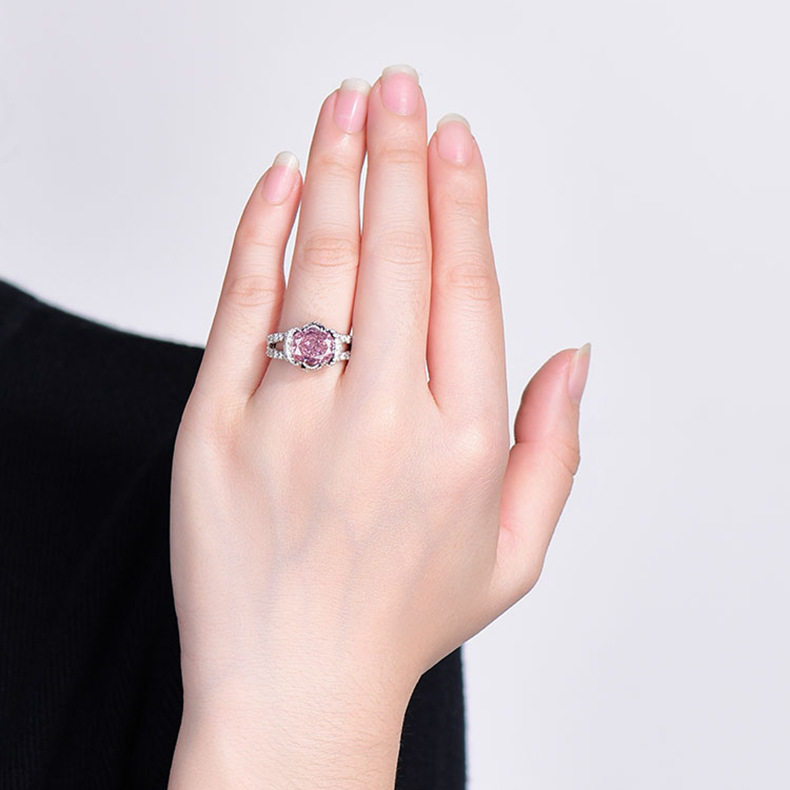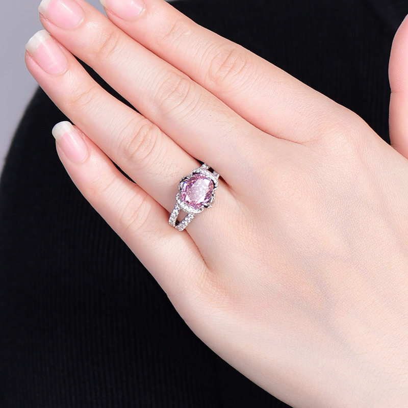 戒指女甜美冰花粉红水晶锆石镶钻镀白金戒指结婚钻戒生日礼物