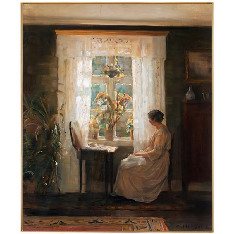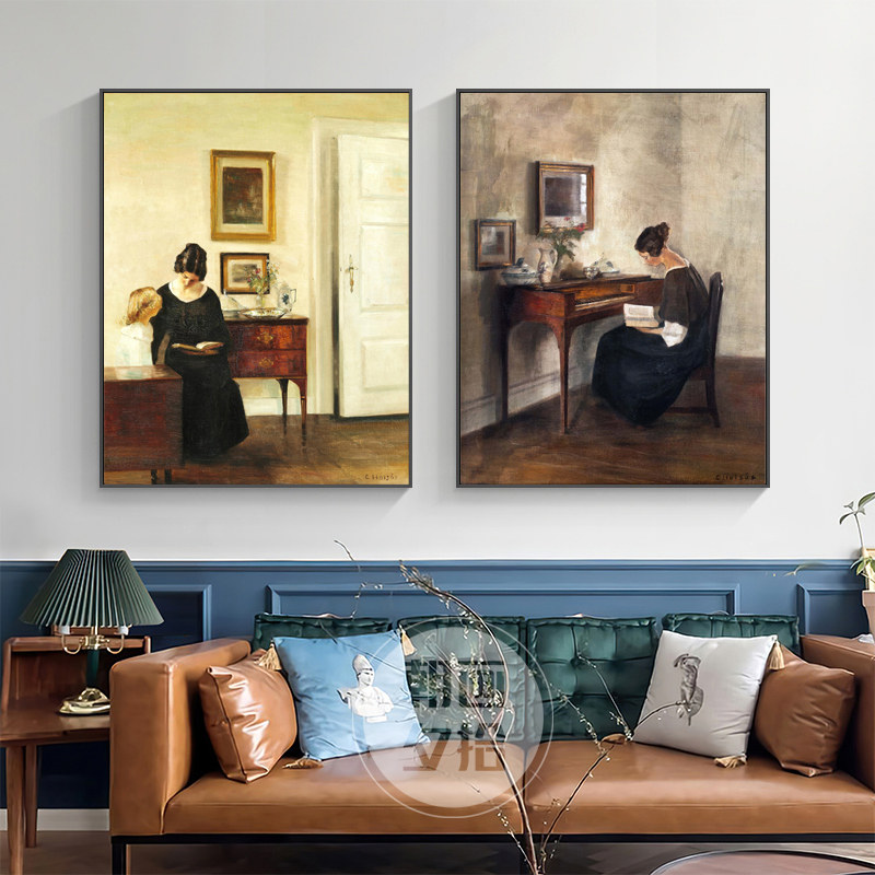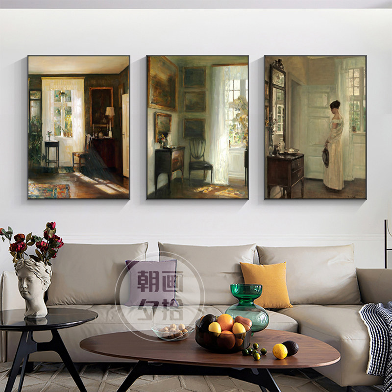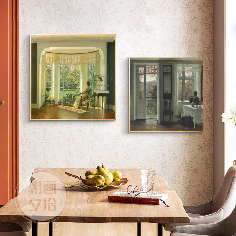 法式古典装饰画复古风格人物女子挂画客厅窗户画建筑文艺卧室书房