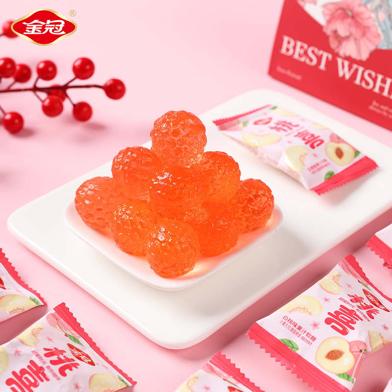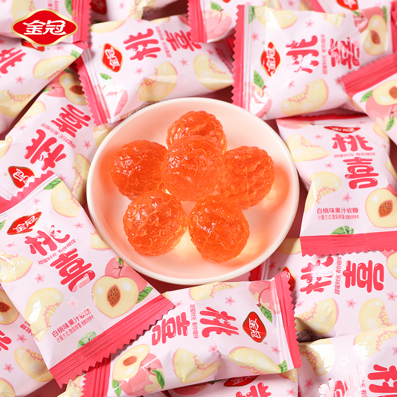 金冠桃喜白桃味果汁软糖500g糖果伴手礼结婚喜糖休闲小零食品散装