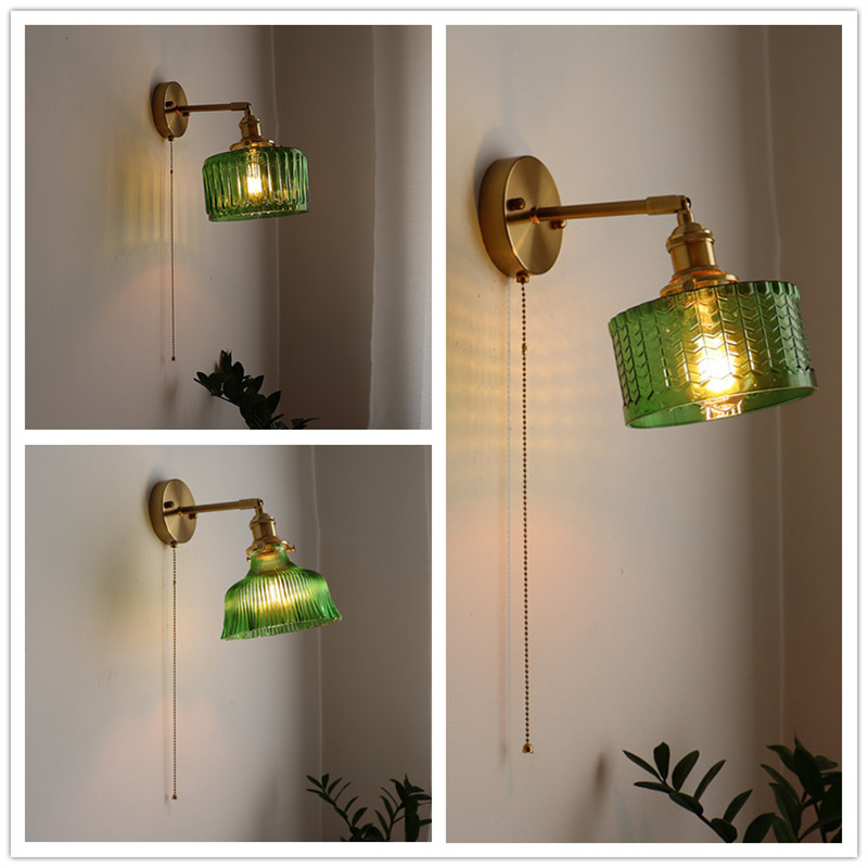 日式复古黄铜玻璃壁灯卧室床头灯卫生间衣帽间背景墙拉线开关灯具