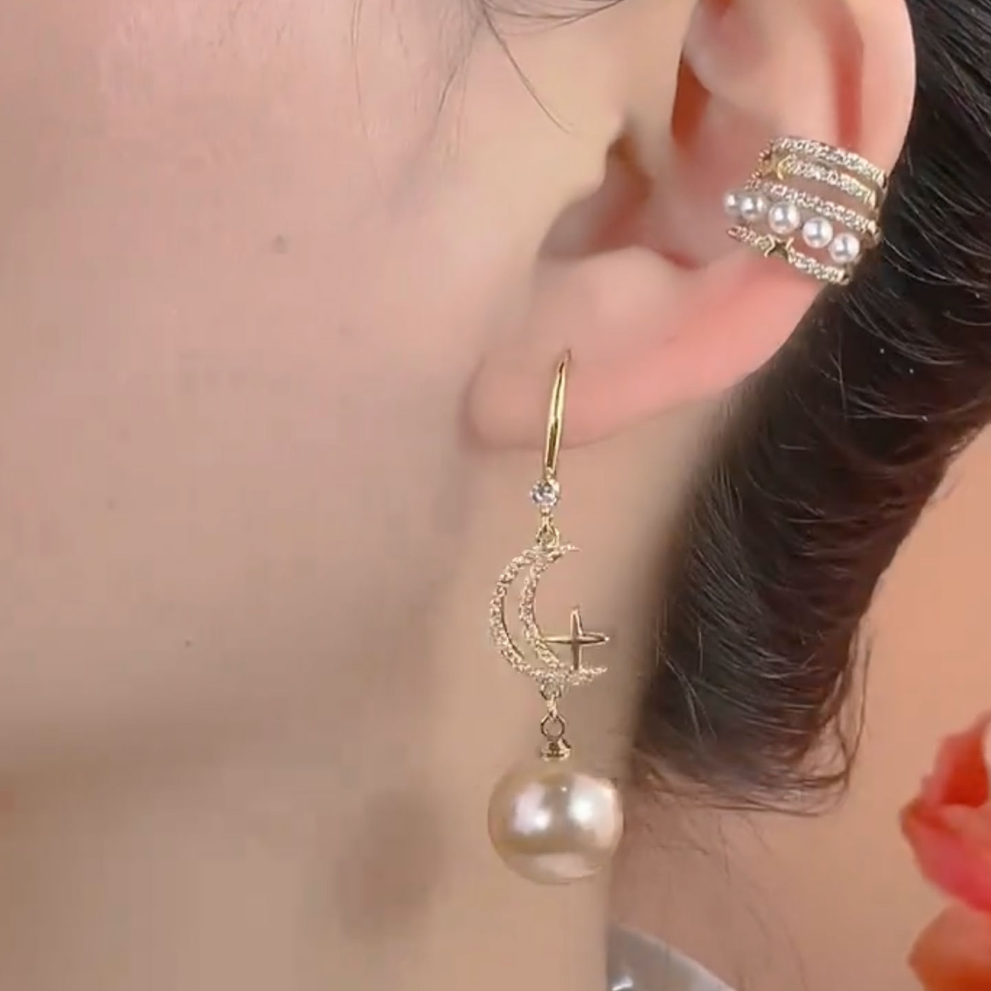 2025年新款不对称星球月亮流苏耳环女长款耳坠个性复古高级感耳饰