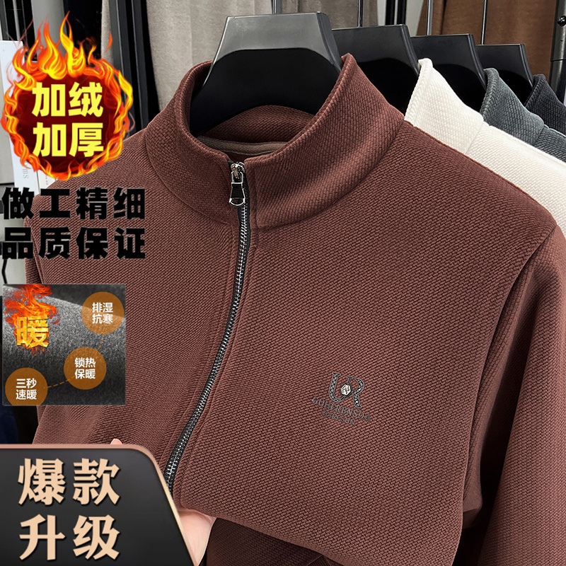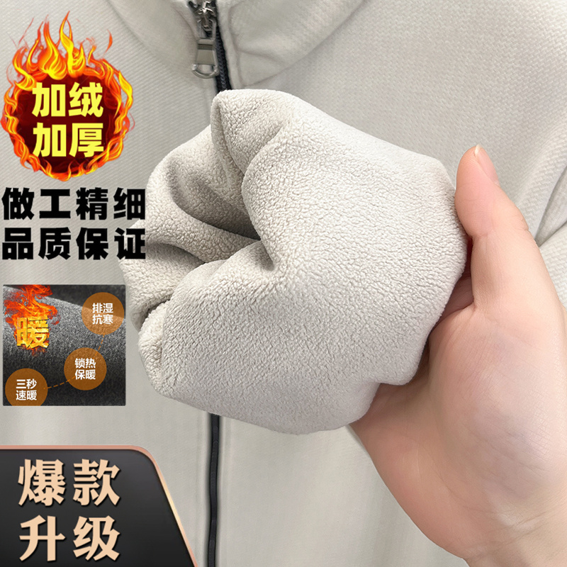 拉链款一体绒立领卫衣外套男士秋冬季休闲潮流加绒加厚百搭夹克衫