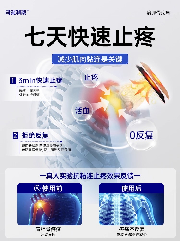 肩胛骨疼痛贴骨缝隙疼痛筋膜损伤疏通贴热敷神器肩膀肌肉酸痛无力