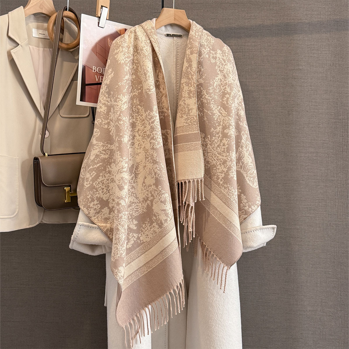 2025冬季新款围巾女双面仿羊绒动物丛林高级感两用外搭披肩围脖