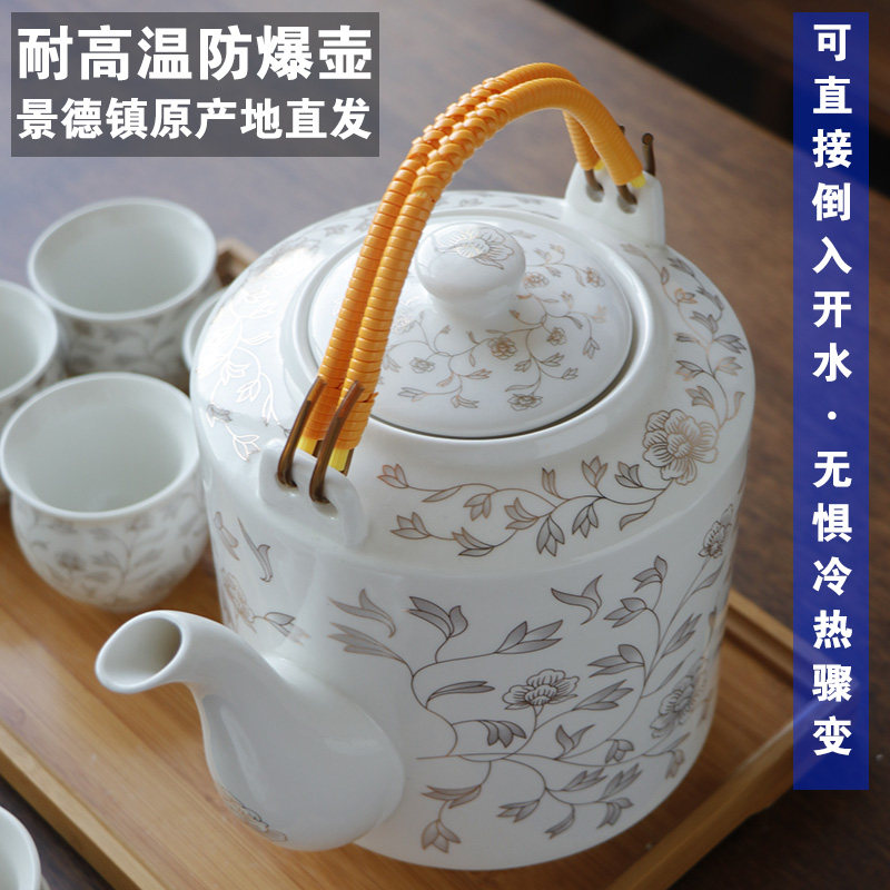 大号家用陶瓷凉水壶景德镇茶具套装提梁壶开水冷水壶耐热大号茶杯