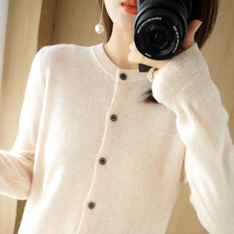 针织圆领开衫女士毛衣小外套春秋新款外穿长袖宽松韩版外搭短款