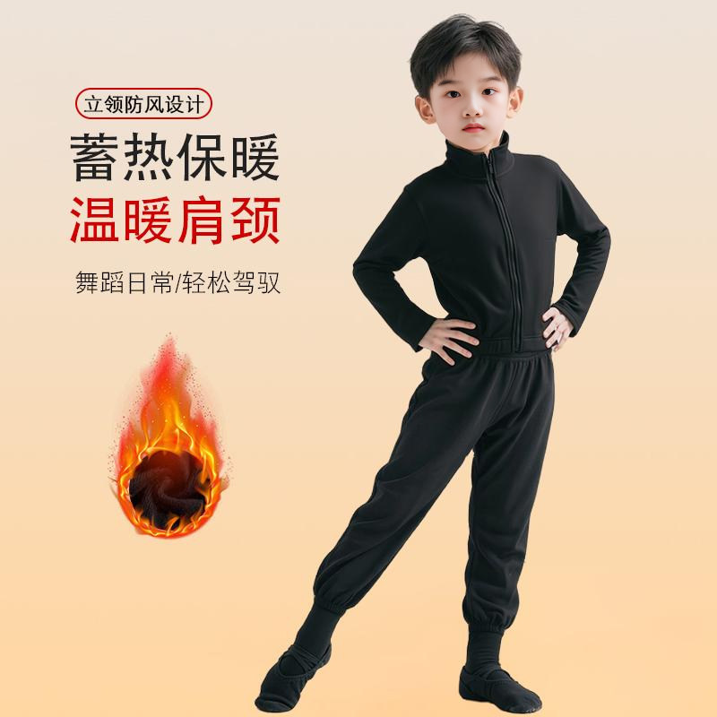 儿童舞蹈服外套男童秋冬加绒练功服立领保暖上衣拉丁舞中国舞套装