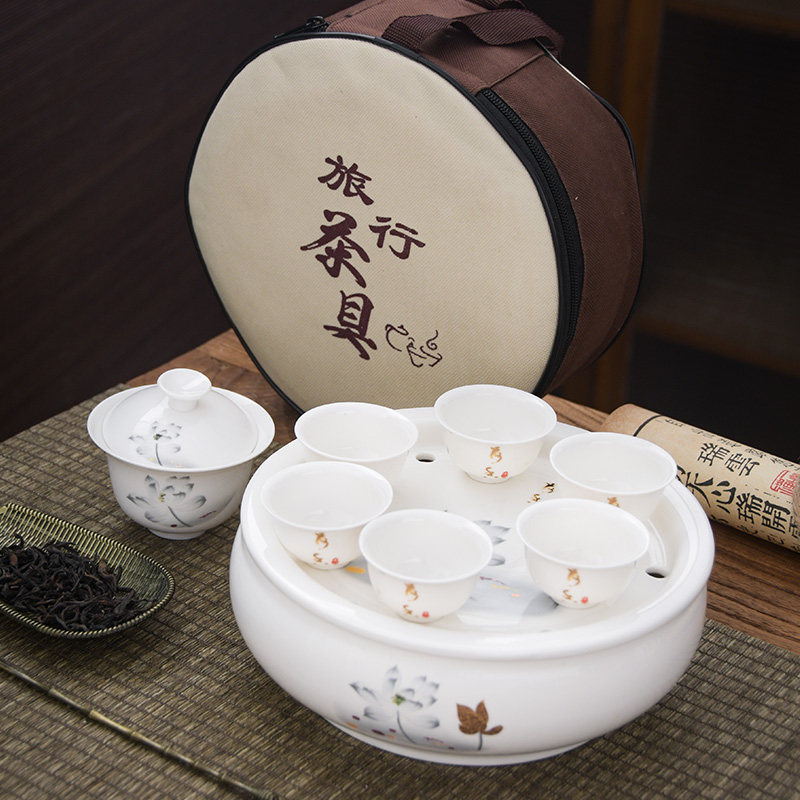 户外茶杯车载旅游套装陶瓷旅行茶具功夫茶具小茶盘便携收纳包简约