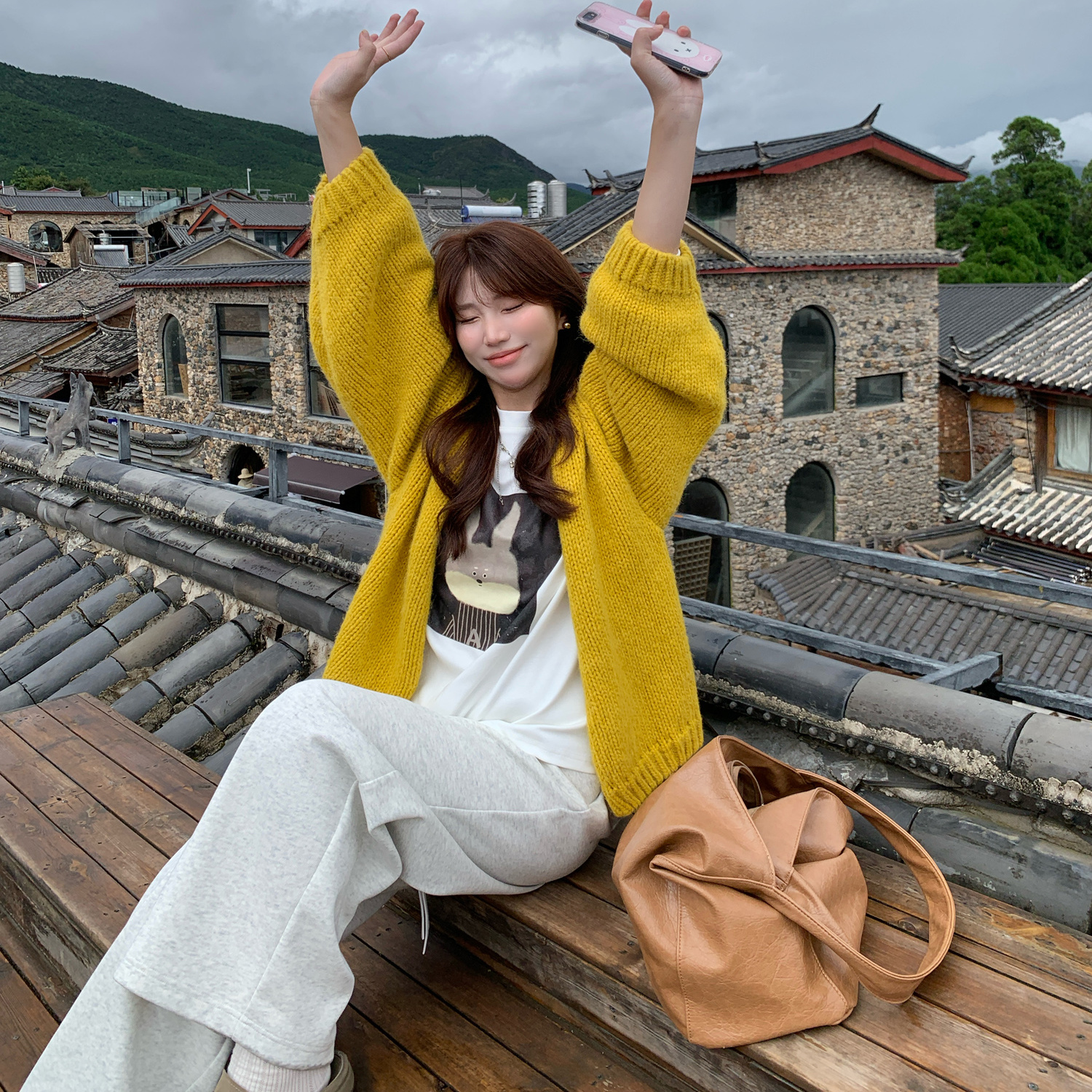 Berry 喜你而欢大庞定制 慵懒v领粗针毛衣开衫女宽松百搭针织外套