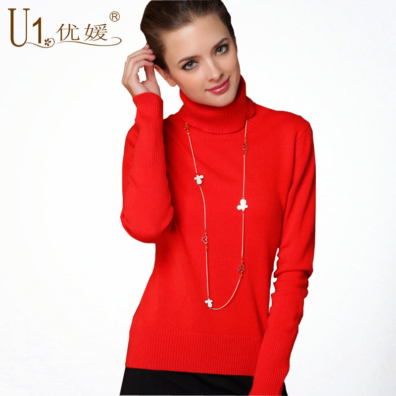 优媛昊艺全羊绒针织衫高领套头毛衣修身素色简约保暖上衣柔软女装