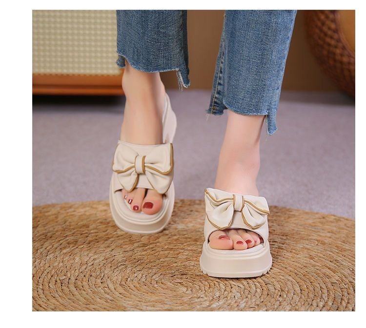 大东妞品牌断码清仓真皮厚底拖鞋女夏季外穿2023新款蝴蝶结一字拖