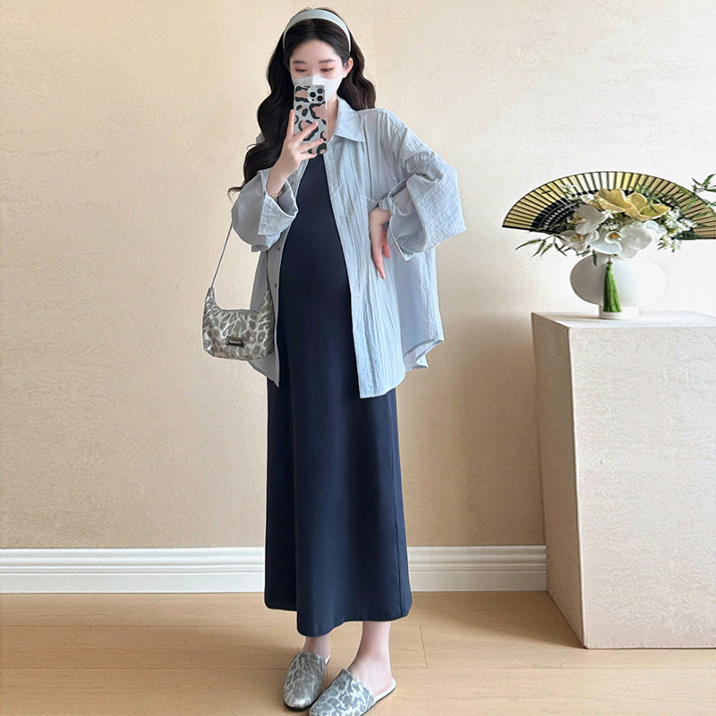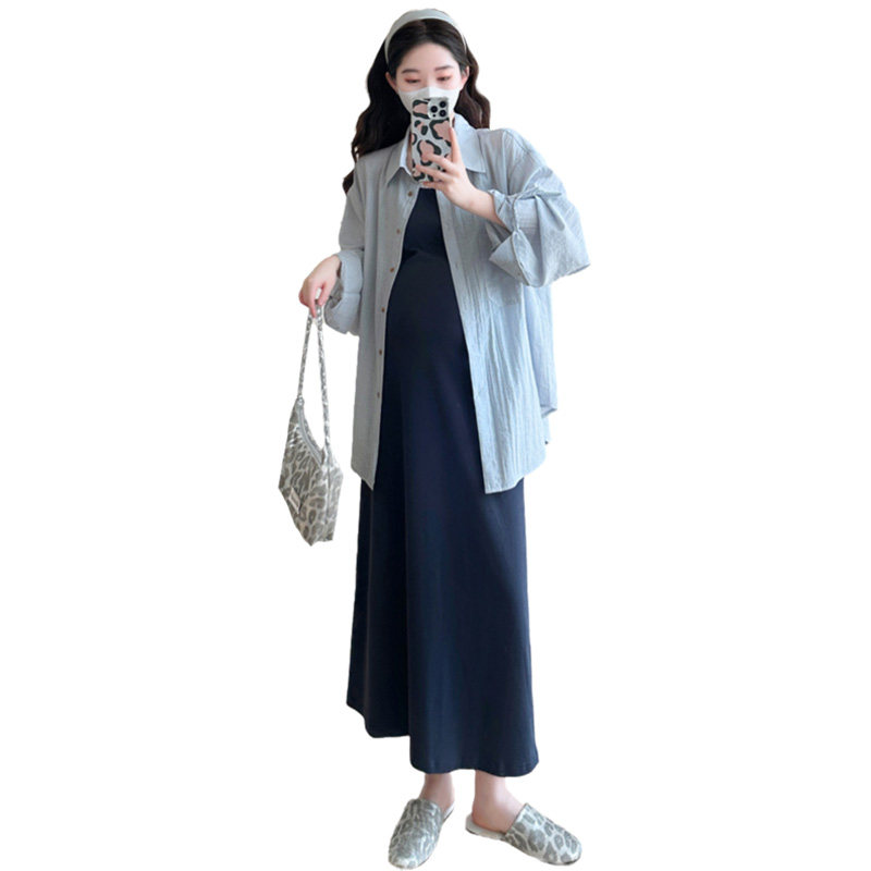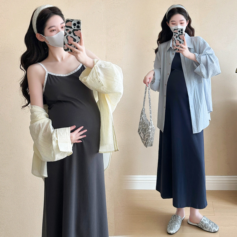 孕妇装夏天裙子中长款过膝减龄宽松吊带裙套装夏季新款孕期连衣裙