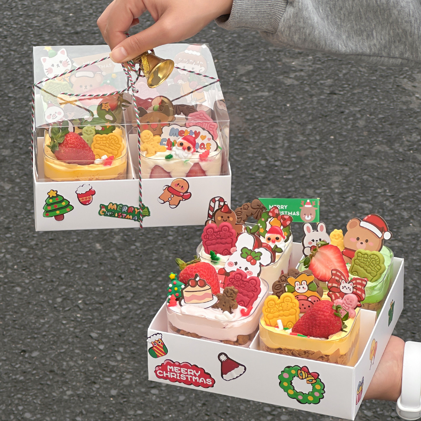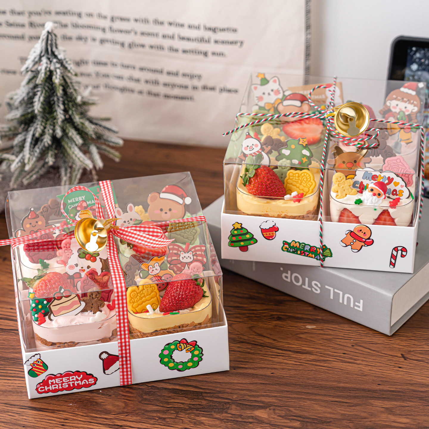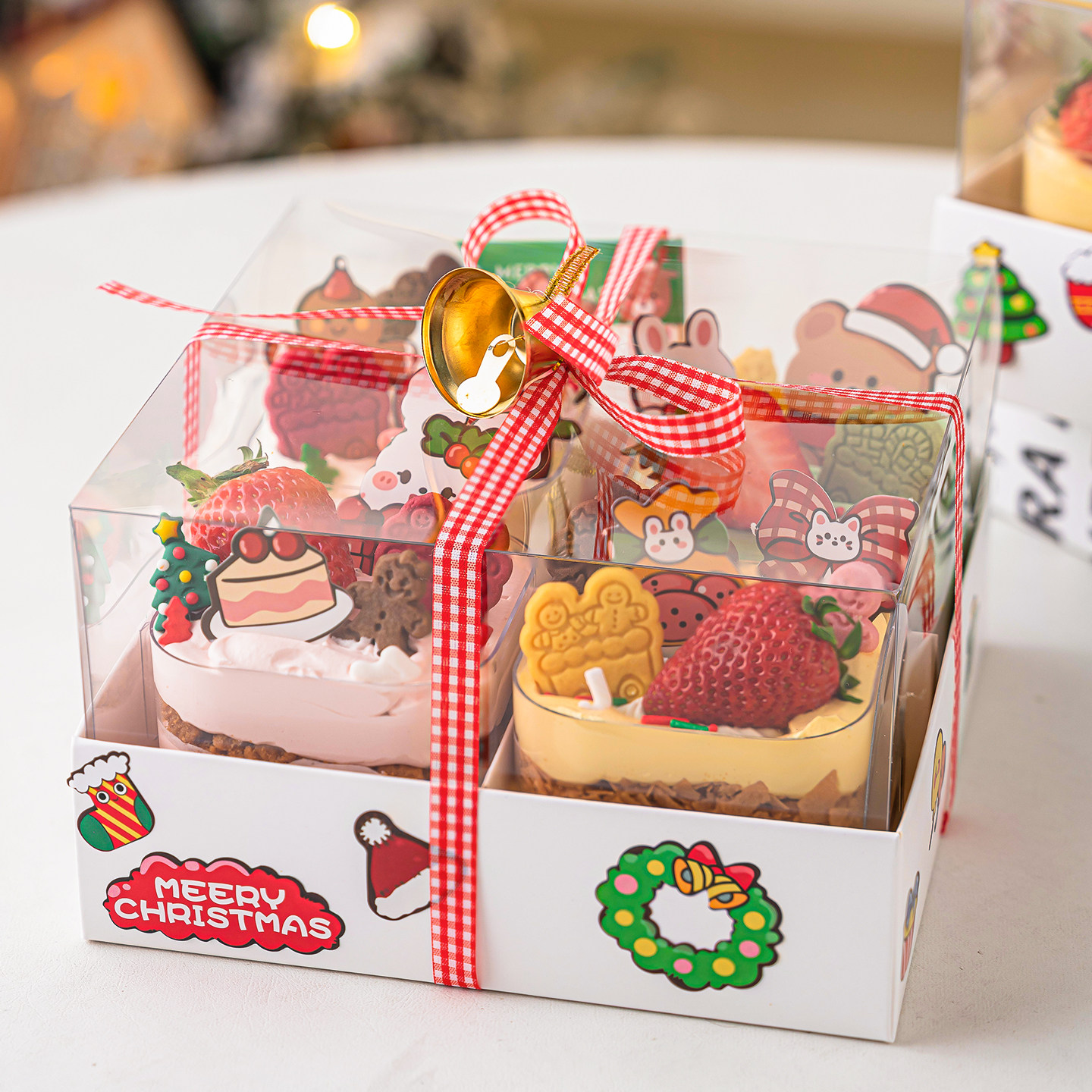 2026圣诞节四宫格慕斯蛋糕装饰手提包装盒圣诞小熊麋鹿雪人贴纸