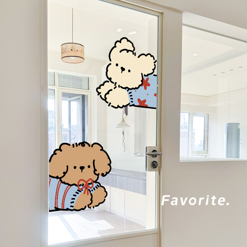 卷毛小狗静电贴防撞推拉门贴墙贴自粘不留胶窗户贴纸创意遮丑贴画