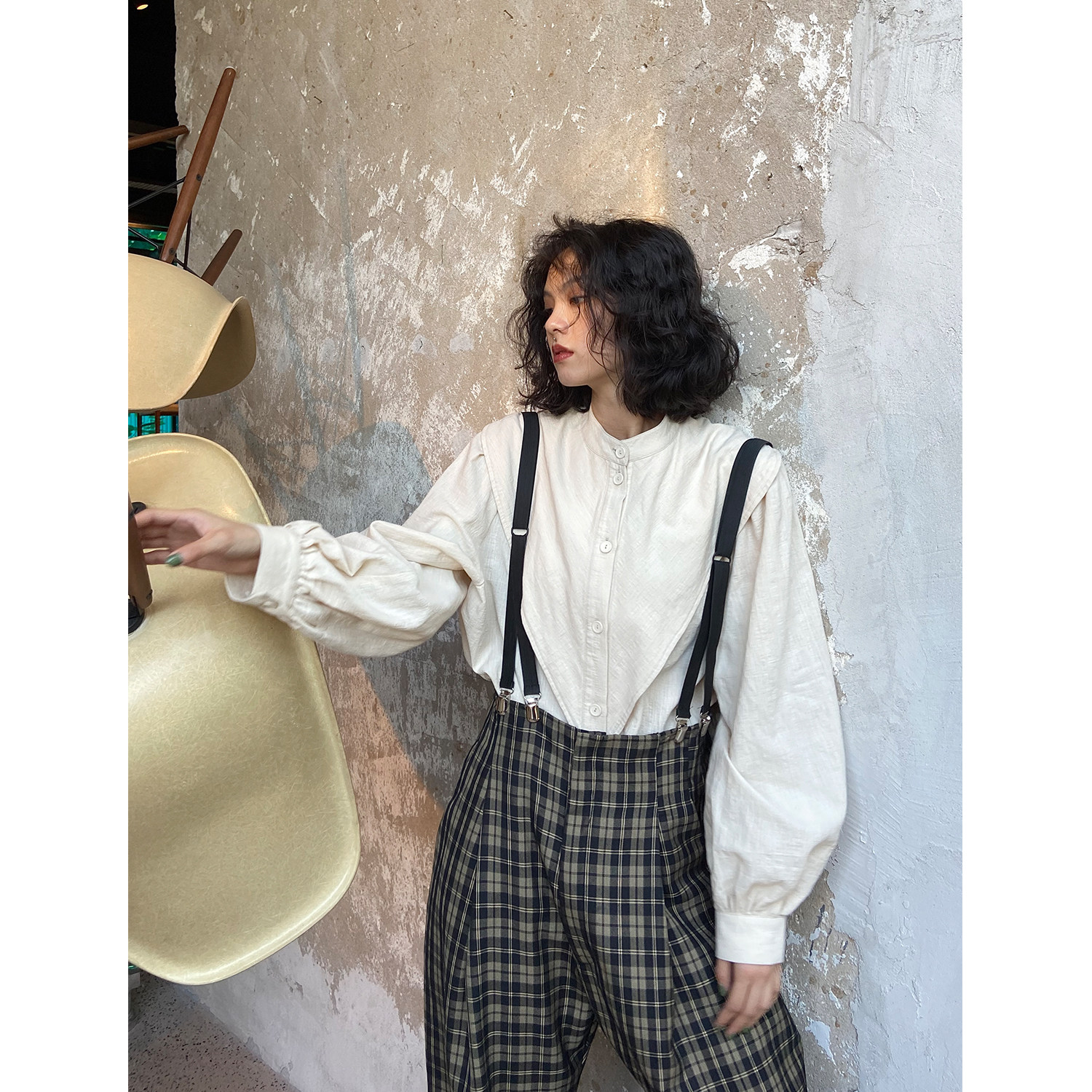 化学少女宽松复古港风长袖衬衫