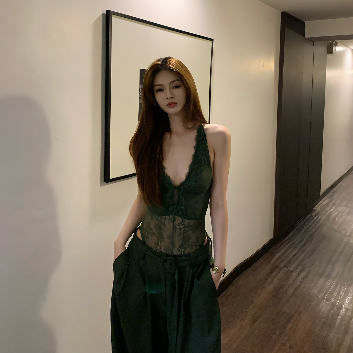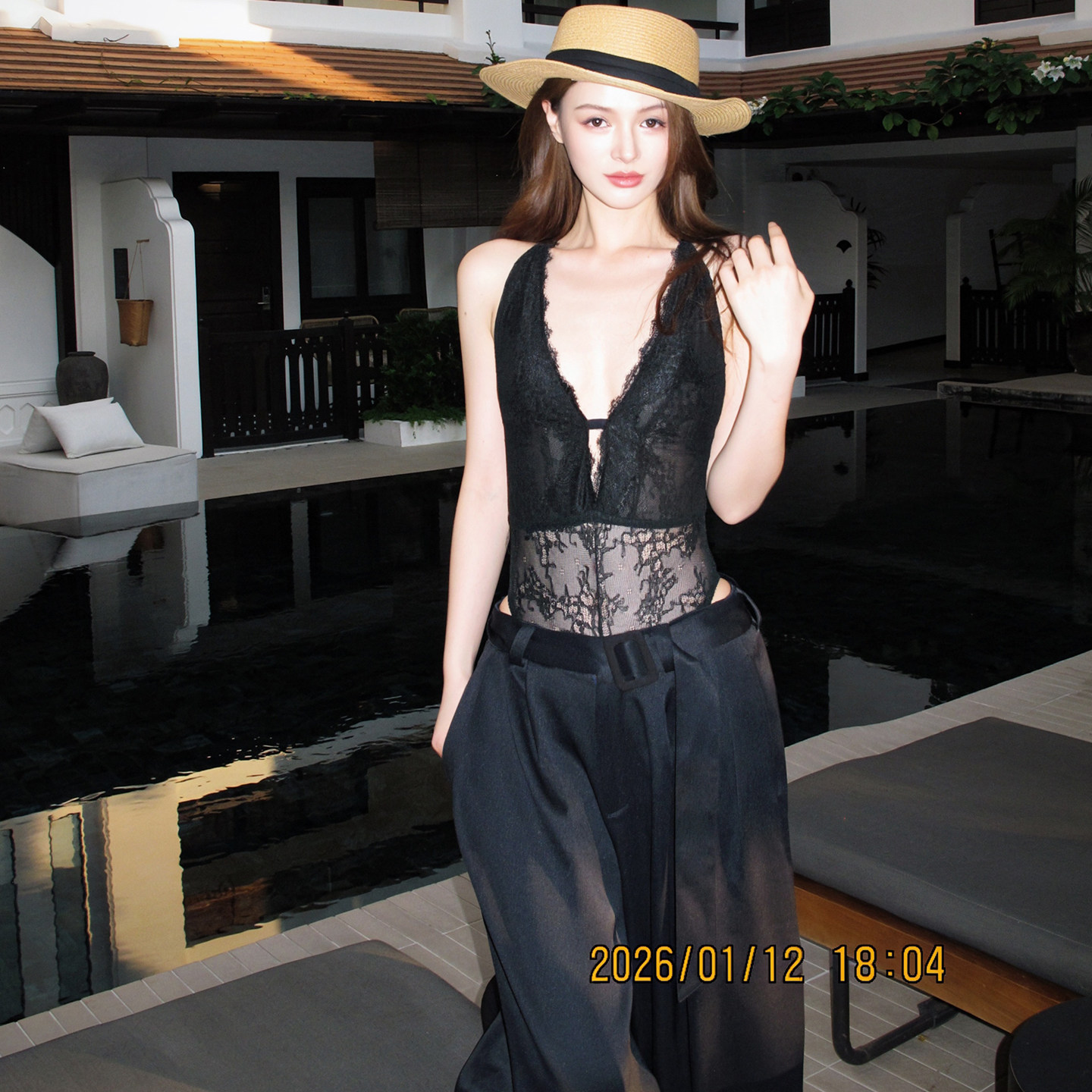 Lienni2026新款气质拼接蕾丝百搭连体衣女中低腰宽松显瘦长裤套装