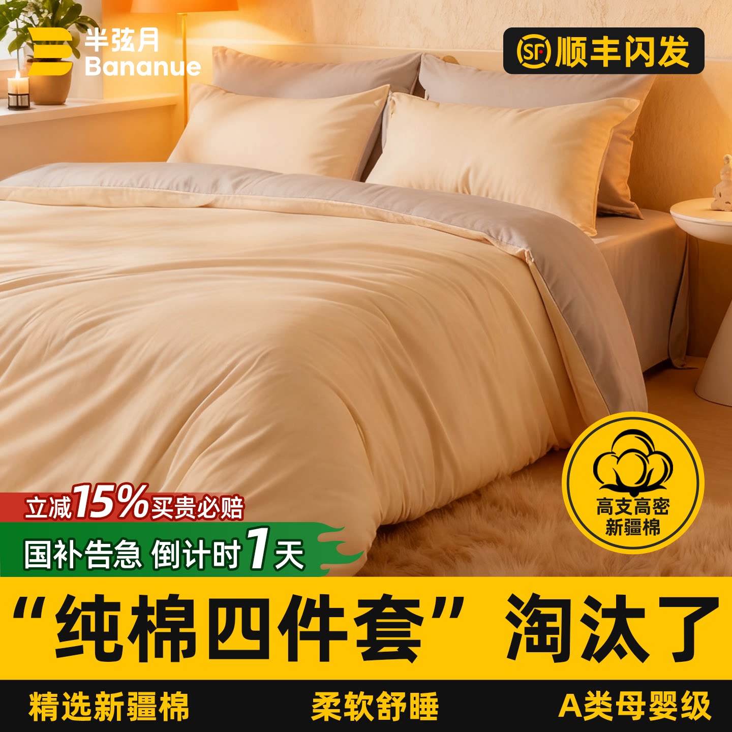 【7A母婴级抗菌】全棉磨毛四件套