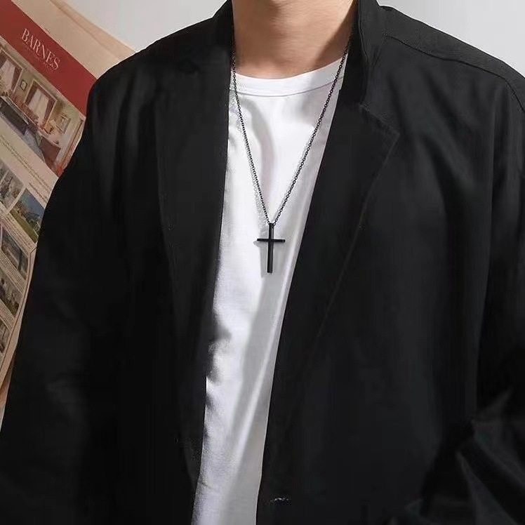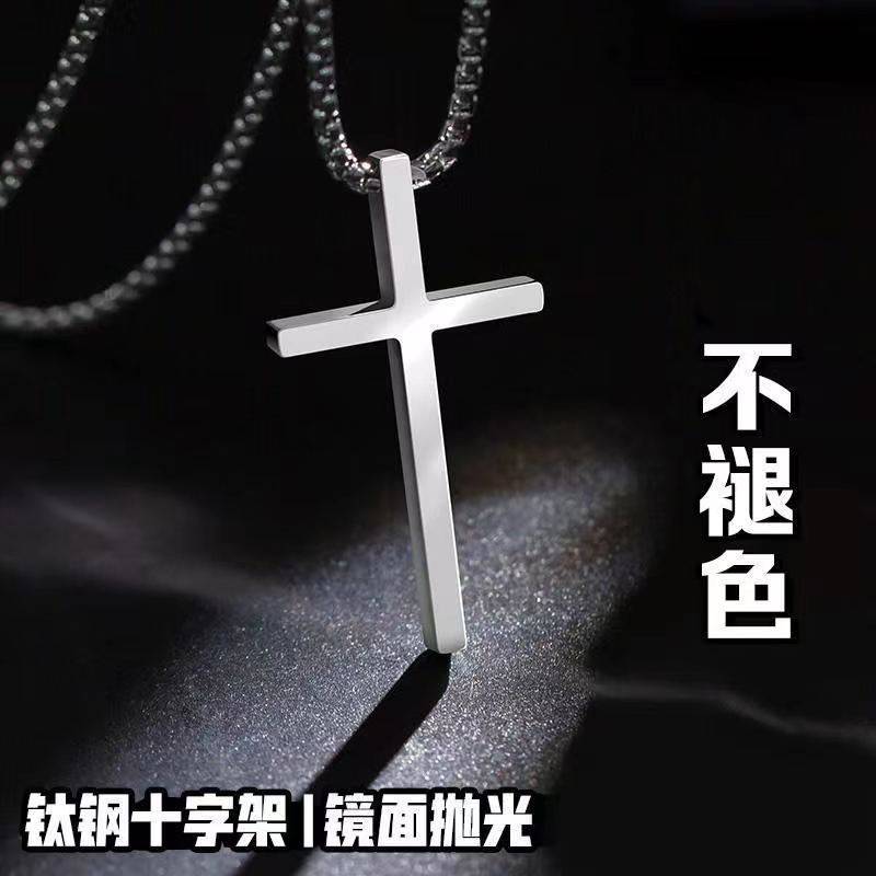 简约百搭纯色镜面不锈钢十字架项链男款不掉色吊坠男情侣配饰饰品