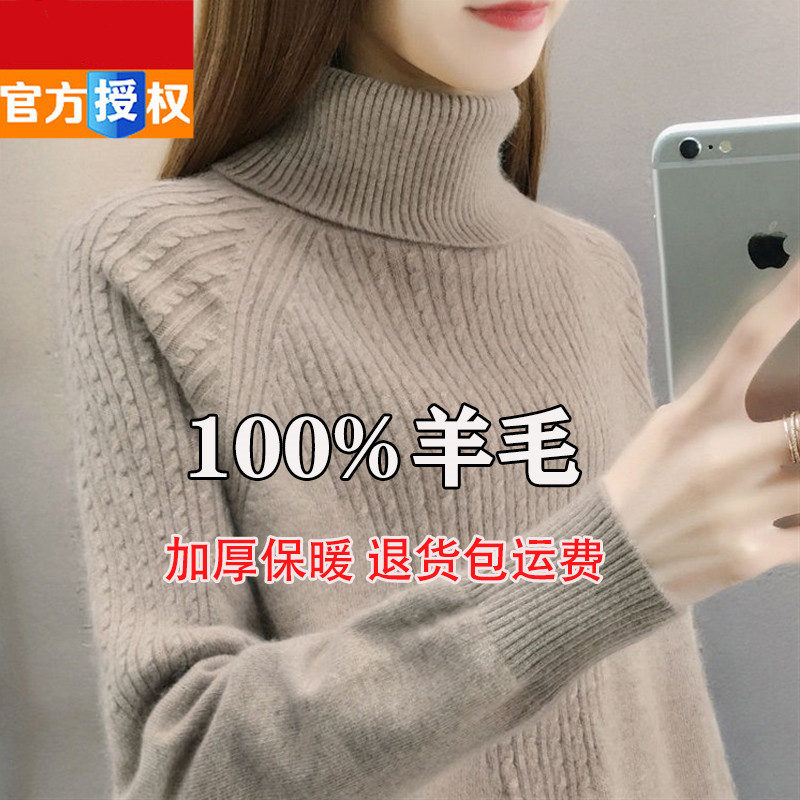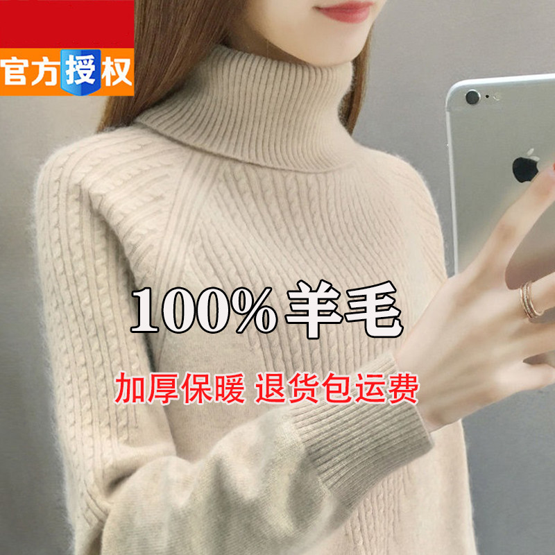 鄂尔多斯市100%纯羊毛衫女新款高领毛衣女秋冬宽松套头打底针织衫