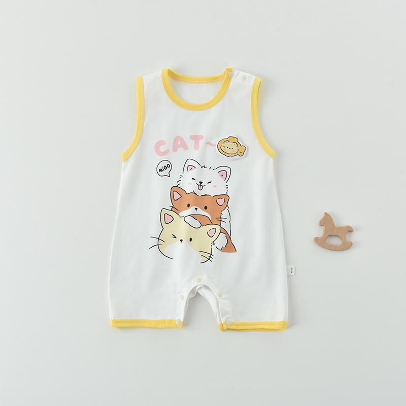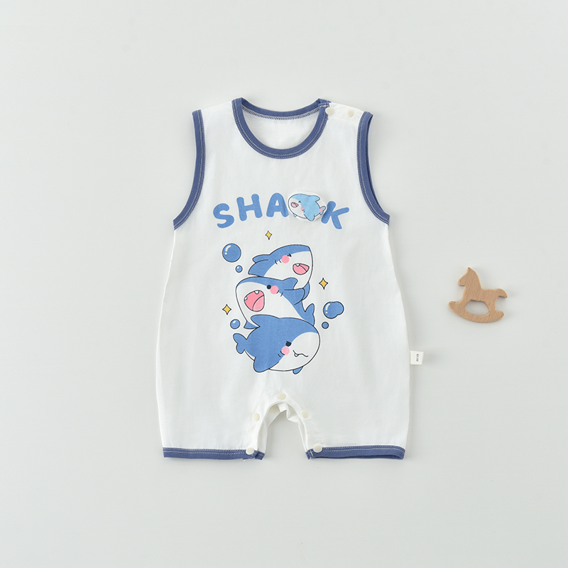 新款男女宝宝背心连体衣夏季纯棉婴儿无袖哈衣爬服薄款夏装外出服