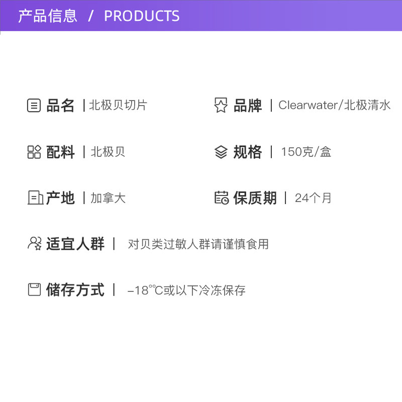 【自营】Clearwater加拿大北极贝刺身切片150g去边去内脏解冻即食