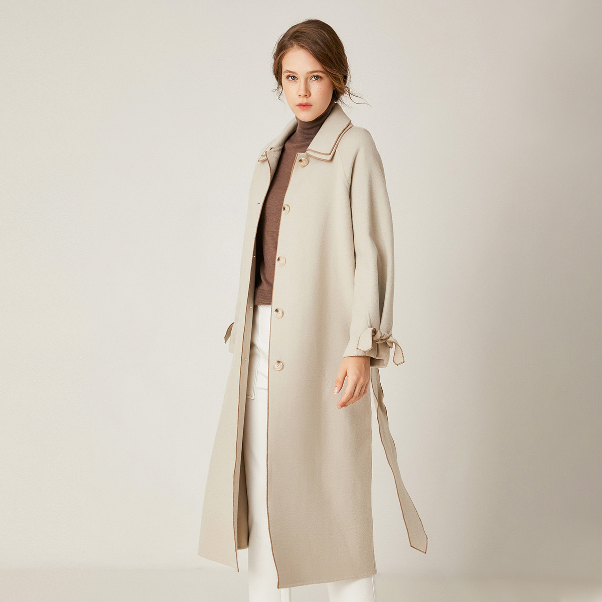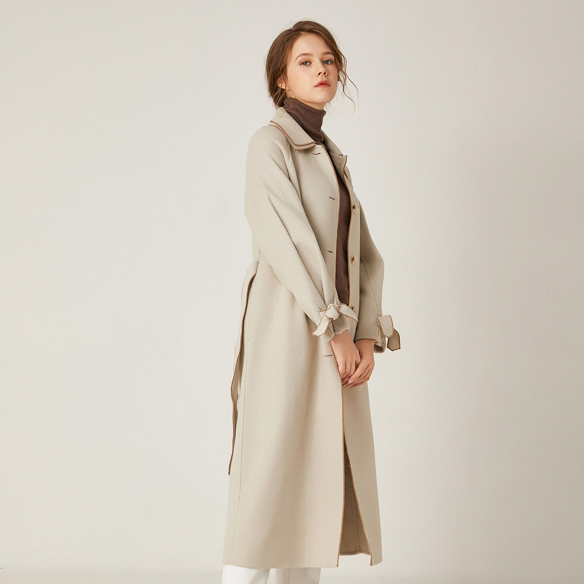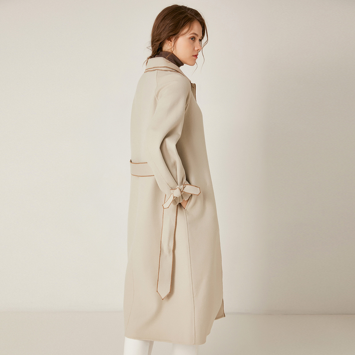 羊毛长款双面呢大衣毛呢法式