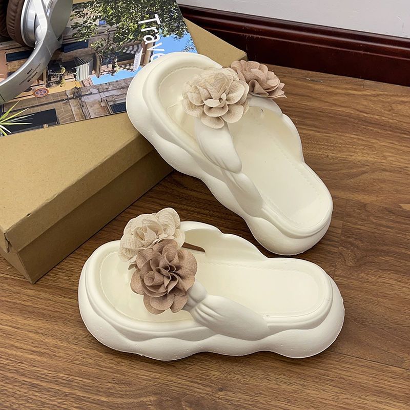 踩屎感厚底人字拖女夏季2025新款厚底花朵沙滩鞋夹脚凉拖鞋女外穿