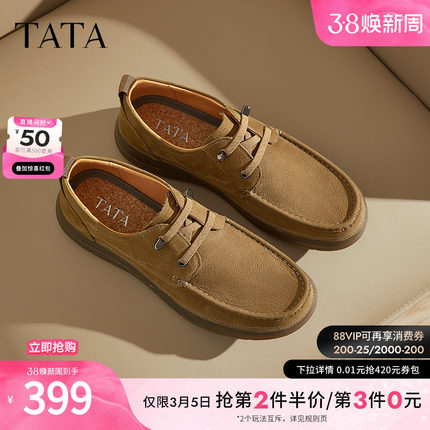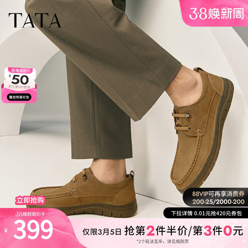 TATA他她商务棕色皮鞋男士休闲鞋真皮软底单鞋爸爸鞋男鞋春新款