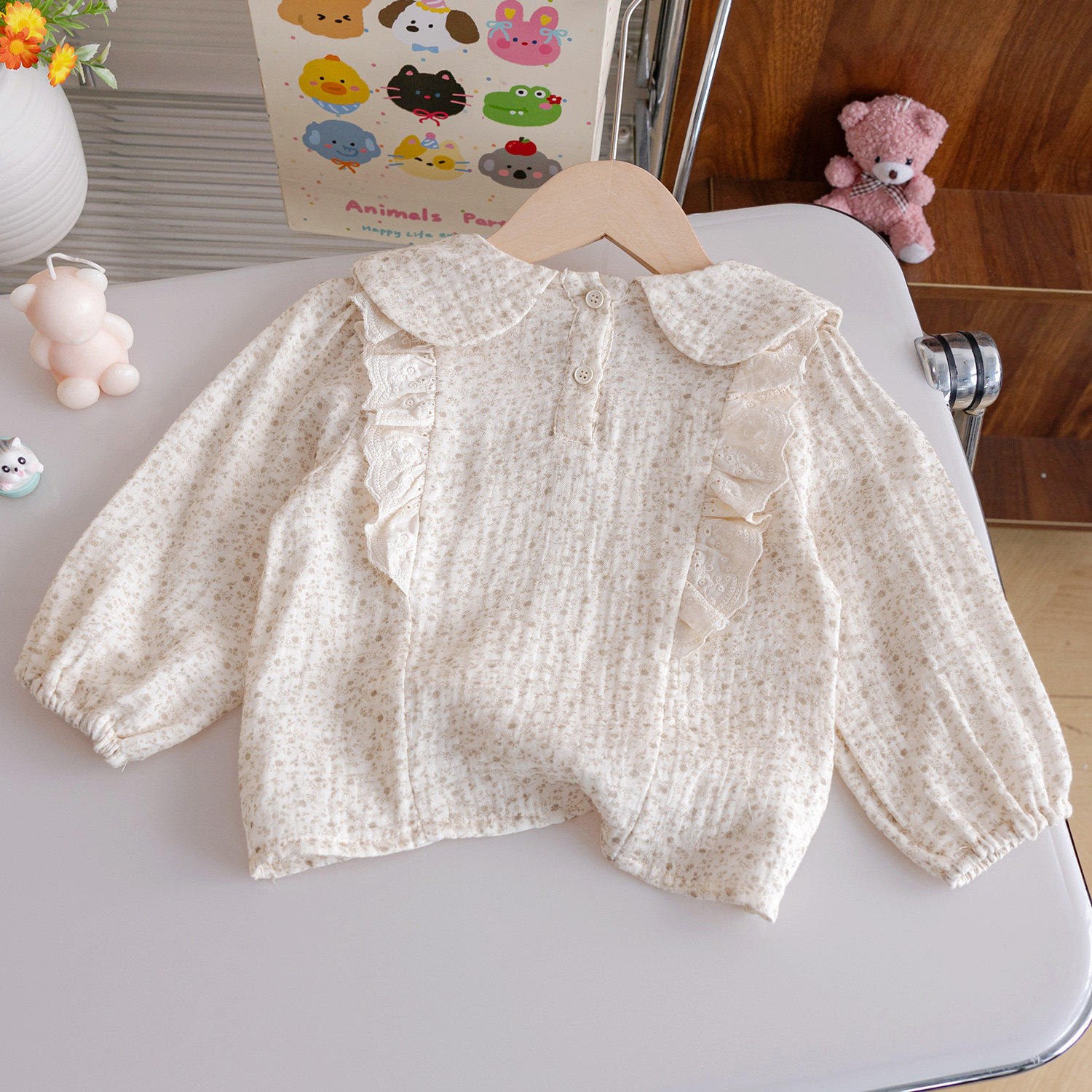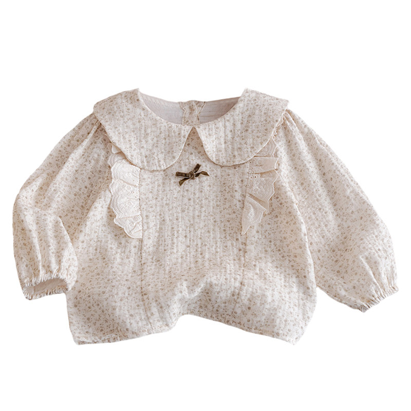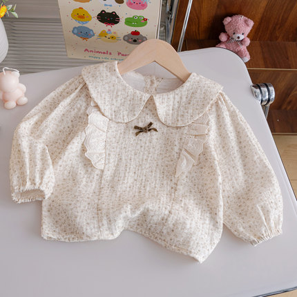 女童韩版衬衫25秋季新款碎花时尚百搭衬衣女宝宝蝴蝶结娃娃领上衣