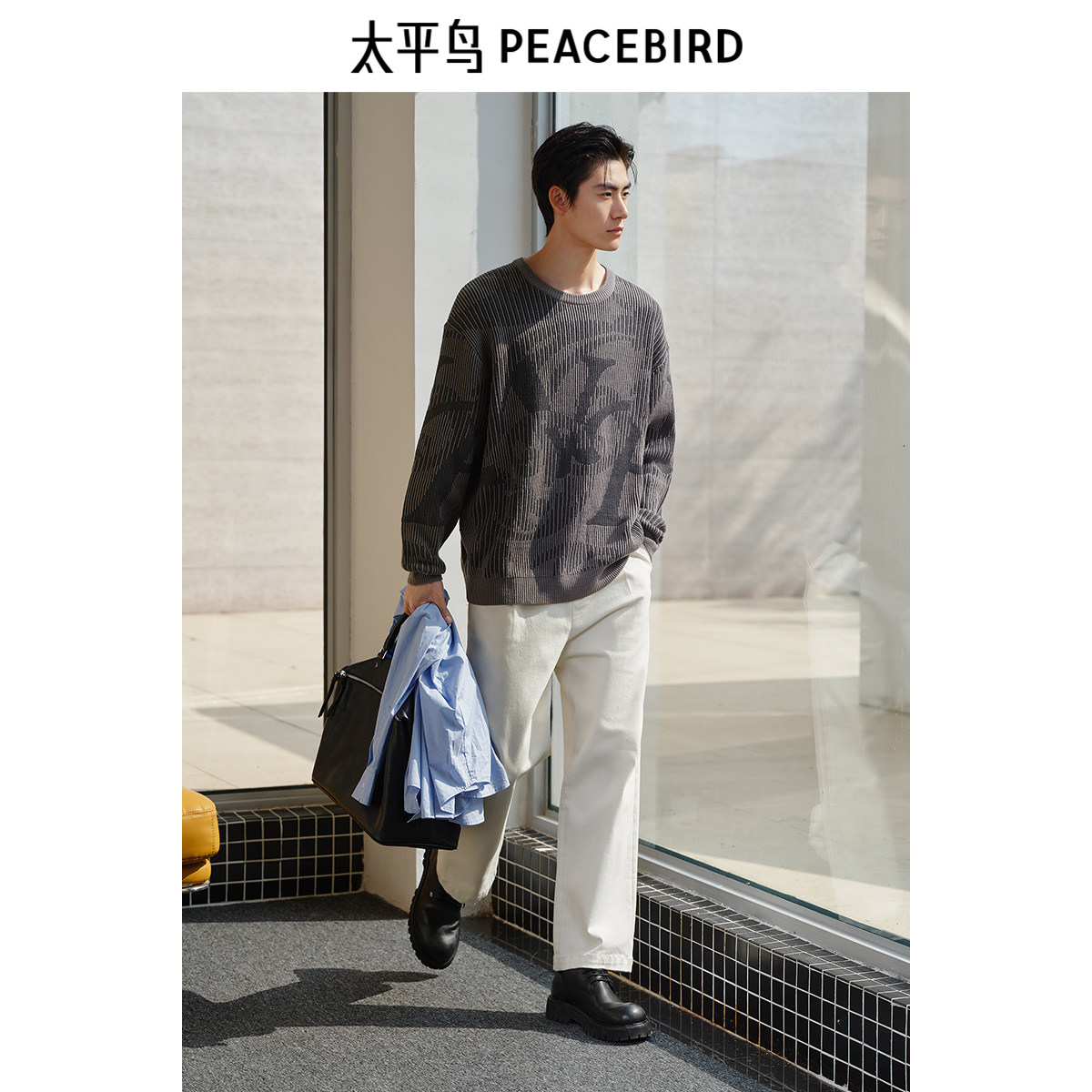 太平鸟男装 休闲毛衣2025春季新款肌理条纹针织衫时尚男士羊毛衫&