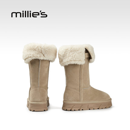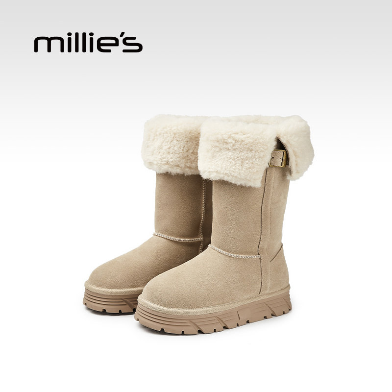 MILLIE'S/妙丽2025秋冬新款圆头厚底皮带扣骑士机车风雪地靴女Z