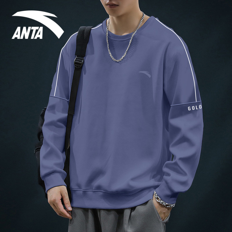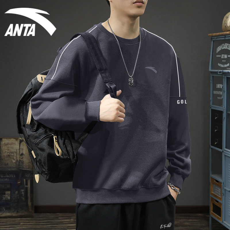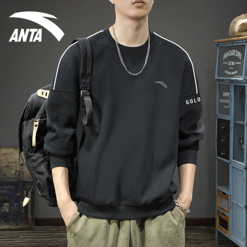 安踏男士卫衣无帽春秋季2025新款圆领上衣服潮牌百搭休闲长袖t恤