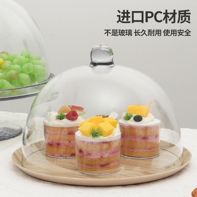 食品PC透明罩果盘下午茶蛋糕罩带盖西点托盘蛋糕盘餐厅水果甜点盘