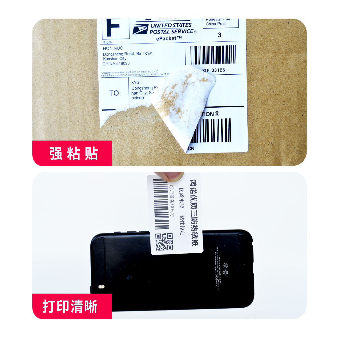 鸿诺优质三防热敏纸不干胶防水标签纸条形码打印机纸50x30 80x60 100*100*150e邮宝菜鸟驿站价格收银空白贴纸