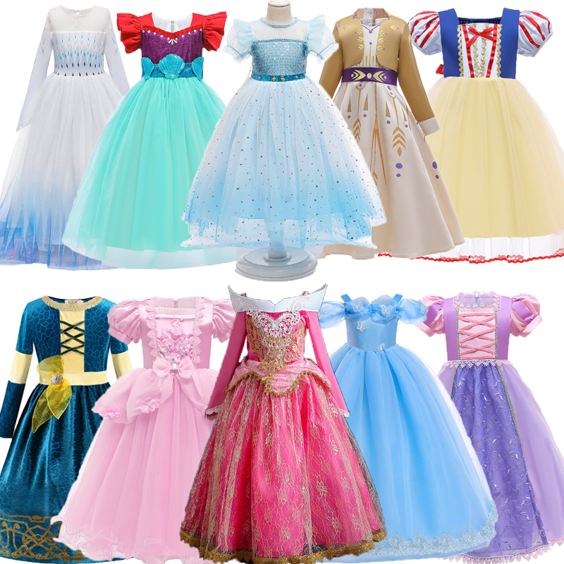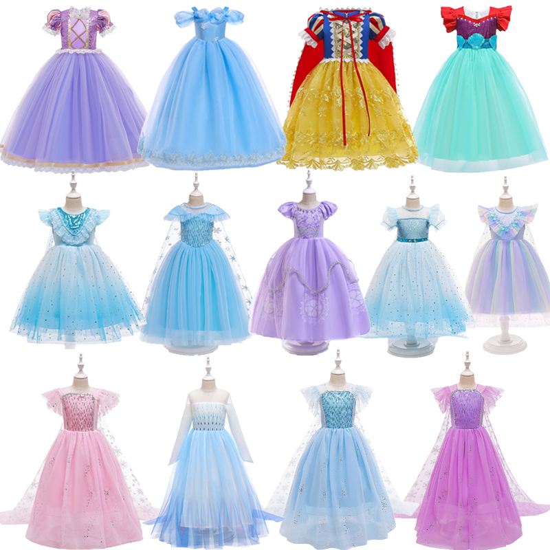 女童儿童节公主裙贝儿灰姑娘长发乐珮白雪公主爱沙睡美人礼服装