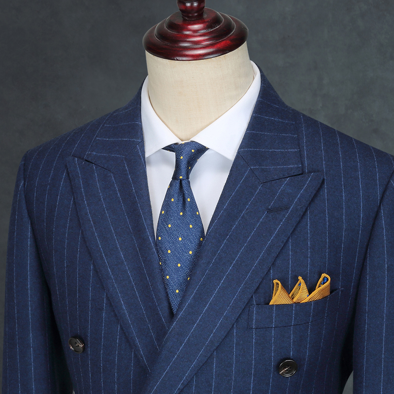 澳嘉纯羊毛蓝色条纹新郎结婚礼服