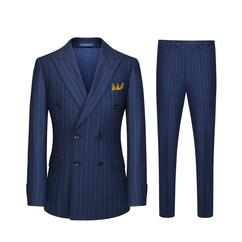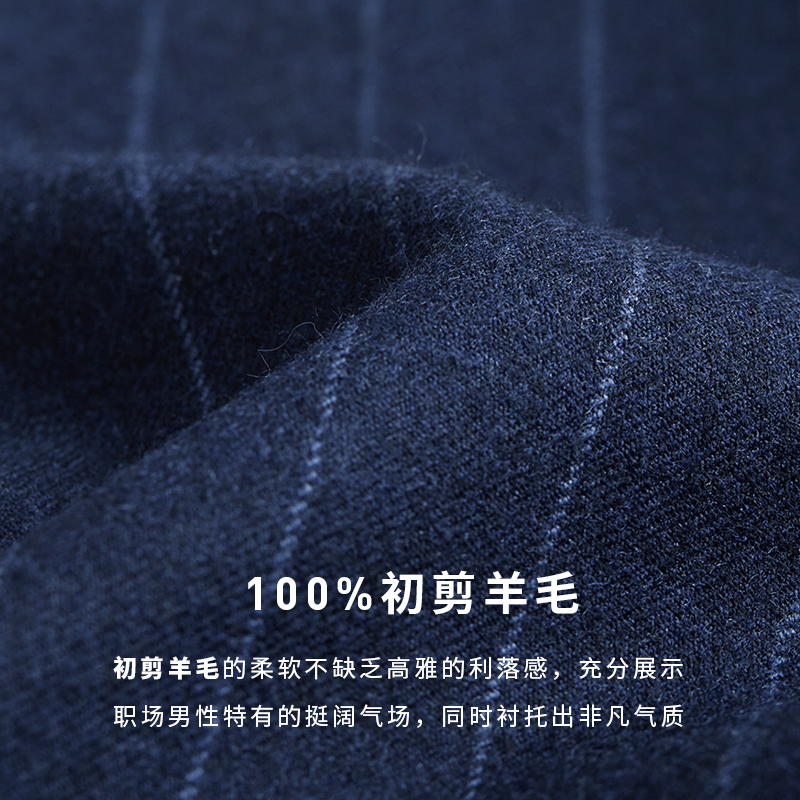 【澳嘉】纯羊毛西装男套装蓝色条纹新郎结婚礼服修身正装男士西服